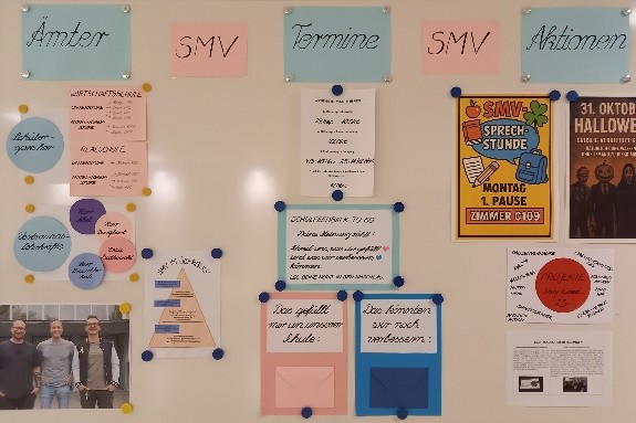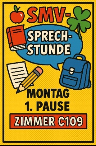 Alle Schüler sind herzlich eingeladen, ihre Ideen, Wünsche und Anregungen einzubringen. Wer mitgestalten oder einfach einmal vorbeischauen möchte, kann uns montags in der ersten Pause im SMV Raum treffen. Weitere Infos und aktuelle Updates findet ihr außerdem jederzeit an der SMV Wand in der Säulenhalle.